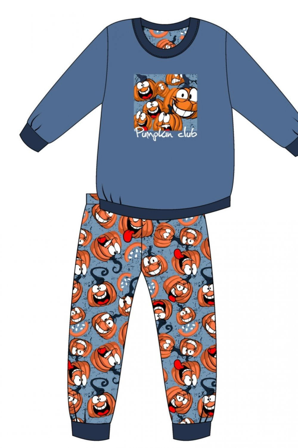 Chlapecké pyžamo 967/123 Pumpkin Cornette - vyrobené z vysoce kvalitní a měkké bavlny - tričko je modré barvy s dlouhými rukávy - zdobené barevným potiskem - dlouhé kalhoty mají pohodlnou gumu v pase