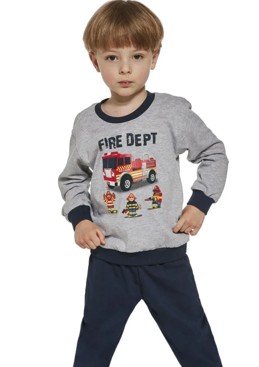 Chlapecké pyžamo značky Cornette. Pyžamo má tričko s dlouhým rukávem. Na přední části je veselý potisk. Spodní díl je dlouhý a jednobarevný. V pase je měkká, široká guma.