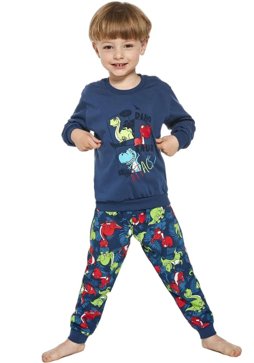 Chlapecké pyžamo značky Cornette. Pyžamo má tričko s dlouhým rukávem. Na přední části je veselý potisk. Spodní díl je dlouhý s potiskem. V pase je měkká, široká guma.