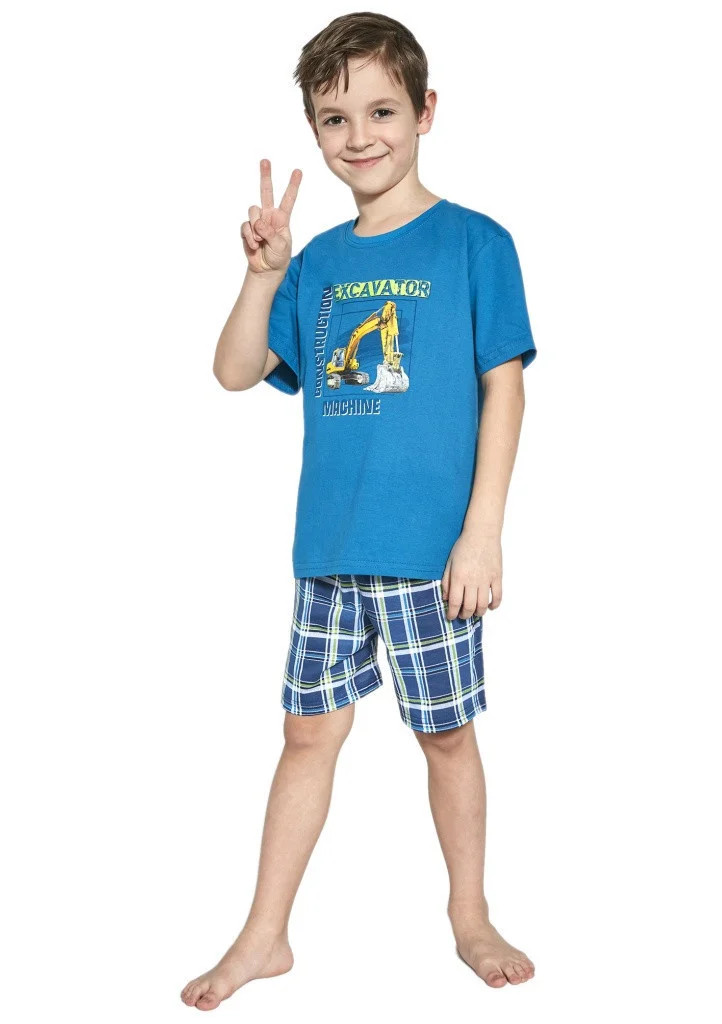 Pohodlné bavlněné pyžámko značky Cornette. Pyžamo se skládá z trika s krátkým rukávem a šortek. Triko má kulatý lemovaný výstřih a obrázek na předním dílu. Šortky mají kárový potisk a v pase pohodlnou širokou gumu.