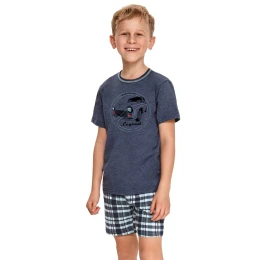 Chlapecké pyžamo 944 Damian TARO - vyrobené z vysoce kvalitní a měkké bavlny - tričko je modré barvy s krátkými rukávy - zdobené barevným potiskem - vzorované kalhoty - pohodlná guma v pase