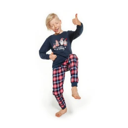 Chlapecké pyžamo 966/122 Gnomes Cornette - vyrobené z vysoce kvalitní a měkké bavlny - tričko je tmavě modré barvy s dlouhými rukávy - zdobené barevným potiskem - dlouhé kárované kalhoty mají pohodlnou gumu v pase