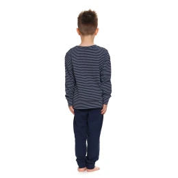 Chlapecké pyžamo 5256 Doctornap - tmavě modrá barva - vyrobené z velmi kvalitní a příjemné bavlny - pruhované tričko s dlouhými rukávy - na přední straně ozdobené potiskem - dlouhé tamvé kalhoty - certifikát OEKO-TEX Standard 100