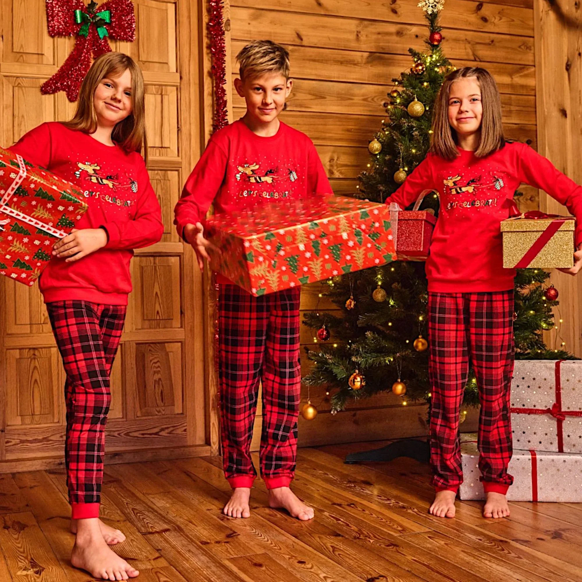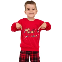 Chlapecké pyžamo 593/156 Celebrate CORNETTE - z vysoce jakostní bavlny - červené tričko s dlouhými rukávy - zdobené potiskem na přední straně - dlouhé kárované kalhoty - vánoční kolekce