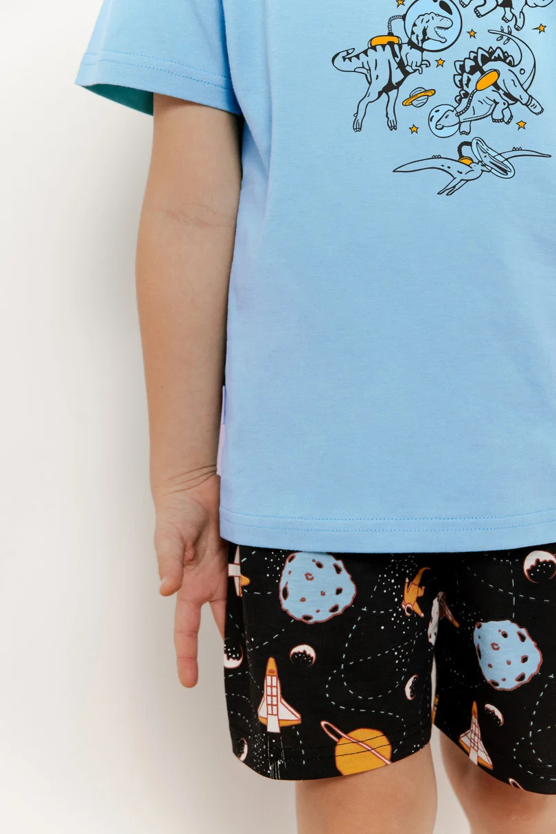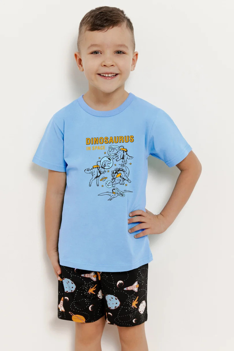 Piżama chłopięca Spencer od Taro to idealny wybór na ciepłe, letnie noce. Wykonana w 100% z wysokiej jakości, miękkiej bawełny, zapewnia doskonały komfort i przewiewność. Koszulka z krótkim rękawem ozdobiona jest kolorowym nadrukiem, który dodaje jej uroku. Do kompletu dołączone są wzorzyste, krótkie spodenki, które gwarantują swobodę ruchów i wygodę noszenia. Całość zapakowana w foliowy woreczek.