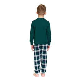 Chlapecké pyžamo 7342 plus Doctornap - z vysoce jakostní bavlny - smaragdové tričko s dlouhými rukávy - kulatý výstřih - přední strana ozdobená potiskem - dlouhé kárované nohavice zakončené stahovacím lemem