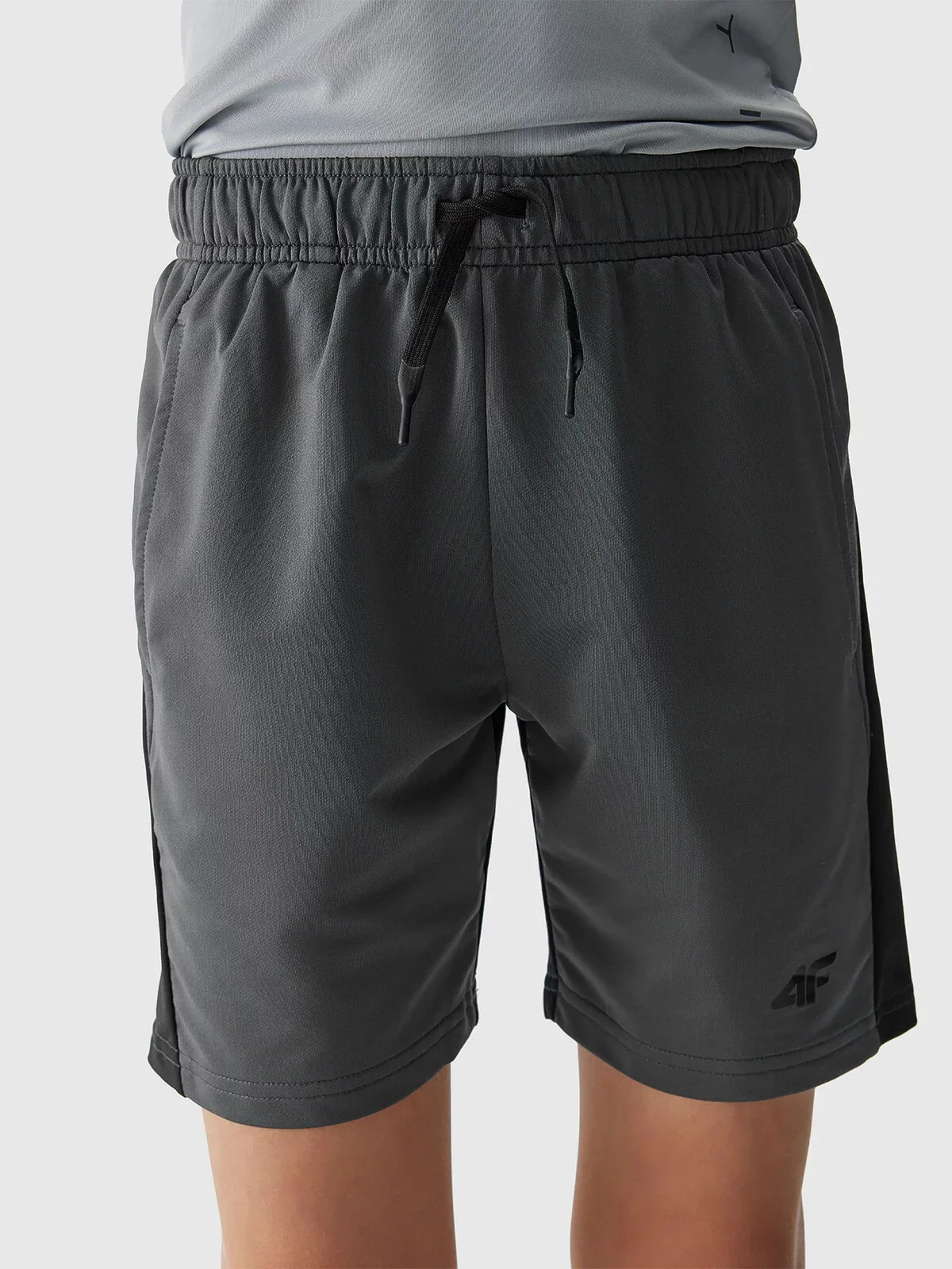 Dětské krátké sportovní šortky s rychleschnoucími vlákny s technologií 4FDry, která podporují odvádění vlhkosti daleko od těla. 2 otevřené boční kapsy. Elastický pás s vnějším nastavením na šňůrky zajistí přizpůsobení.