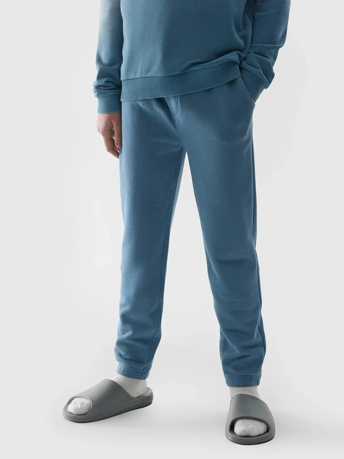 Chlapecké tepláky jsou ideálním prvkem jak pro casualové, tak i sportovní každodenní stylizace. Mají střih regular, který se pohodlně přizpůsobí postavě a zúžené nohavice zakončené elastickým lemem.
