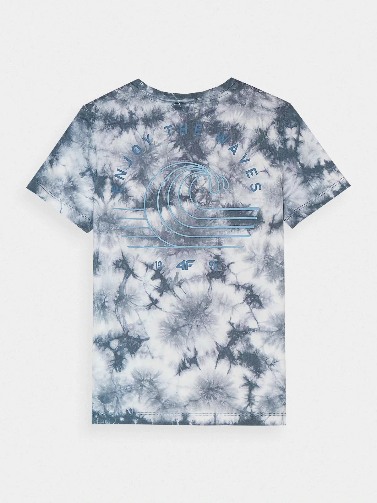 Chlapecké tričko 4F je vyrobeno ze 100% bavlny, díky čemuž je měkké, odolné a příjemné na dotek. Kulatý výstřih je zakončen mírným žebrováním. Na přední straně je malý potisk na hrudi. Viditelný potisk na zadní straně s nápisem "Enjoy the waves".