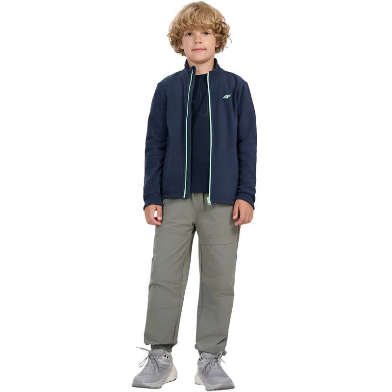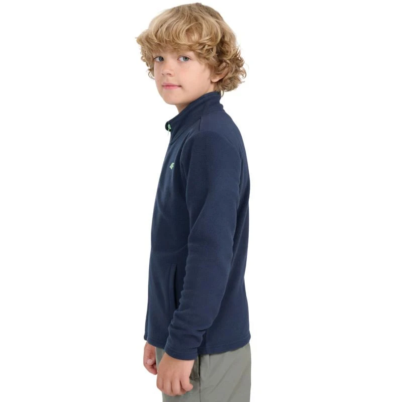 Chlapecký fleece 4F M413 v tmavě modré barvě 4FJWAW25TFLEM413 31S je perfektní fleece pro každodenní nošení s jednostranně kartáčovanou vnitřní stranou pro větší teplo, regular střihem, standardním střihem do boků, měkkou fleecovou tkaninou a jednobarevným provedením, které se hodí k různým outfitům. Stojatý límec chrání krk, klasické manžety, 2 otevřené kapsy na bocích, jednosměrný hlavní zip a technologie 4FWarm pro zvýšení tepelného komfortu. Materiál: 100% polyester.