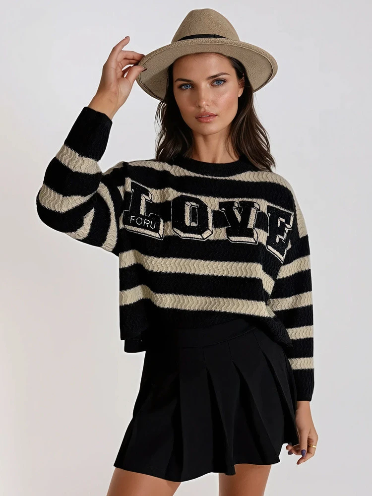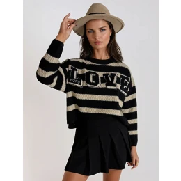 Dámský svetr CHLOE, který je absolutní "must-have" ve vašem šatníku, je jedinečnou volbou pro ženy, které milují módu a styl. Tento svetr v sobě kombinuje řadu módních prvků, které mu dodávají jedinečný charakter. Nadčasové pruhy, které tento svetr zdobí, v kombinaci s výrazným tkaným vzorem vytvářejí módní a osobitý design ideální pro podzim. Svetr je navíc vybaven našitým nápisem "LOVE", který mu dodává romantický nádech. Dámský svetr CHLOE je ideální volbou pro ty, které chtějí ve svém podzimním stylingu vyjádřit lásku k módě a stylu.