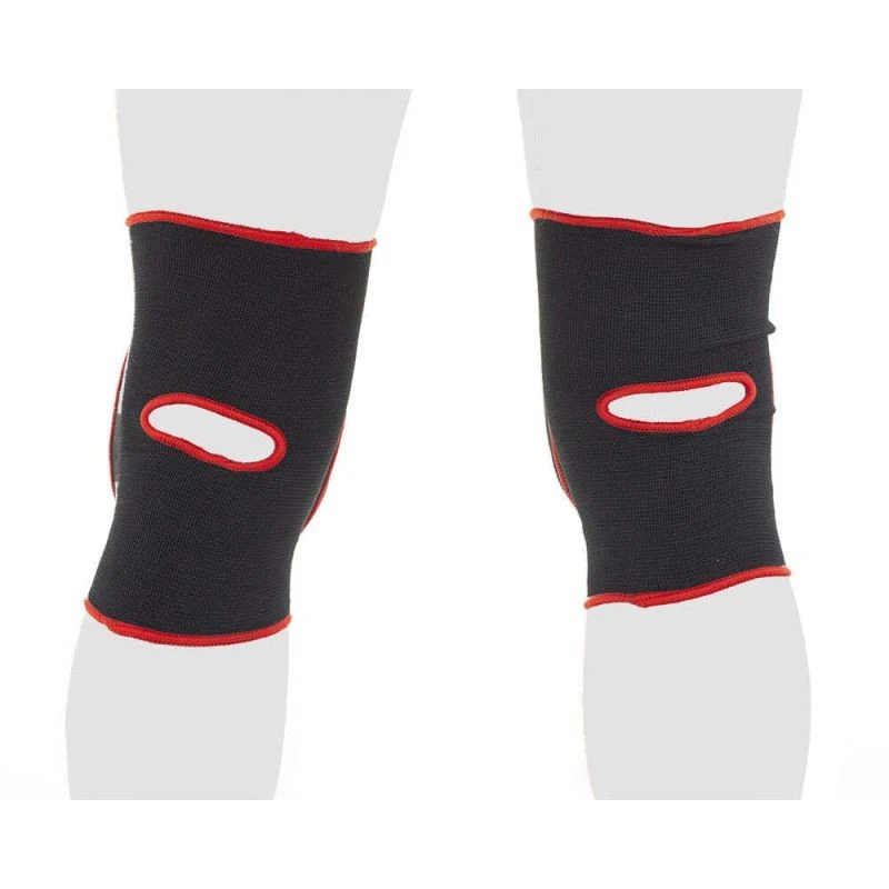 Ochraniacze na kolana wykonano z elastycznego materiału zapewniającego odpowiednie dopasowanie do kształtu nogi. Mieszanka poliestru i bawełny zapewnia utrzymanie stałej temperatury stawu kolanowego oraz dodatkowo stabilizuje jego pracę podczas obciążeń treningowych.