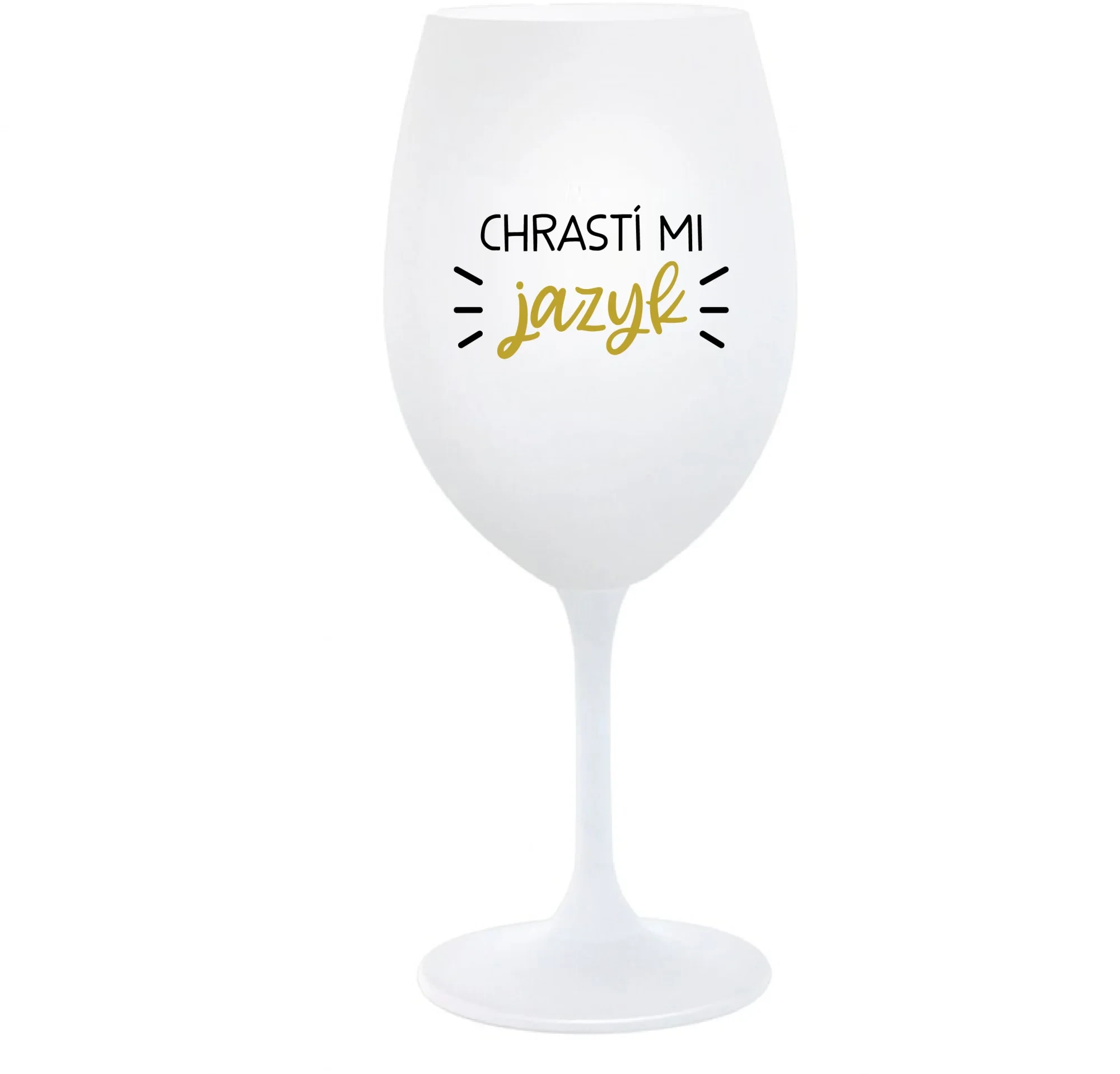 CHRASTÍ MI JAZYK - biely pohár na víno 350 ml
