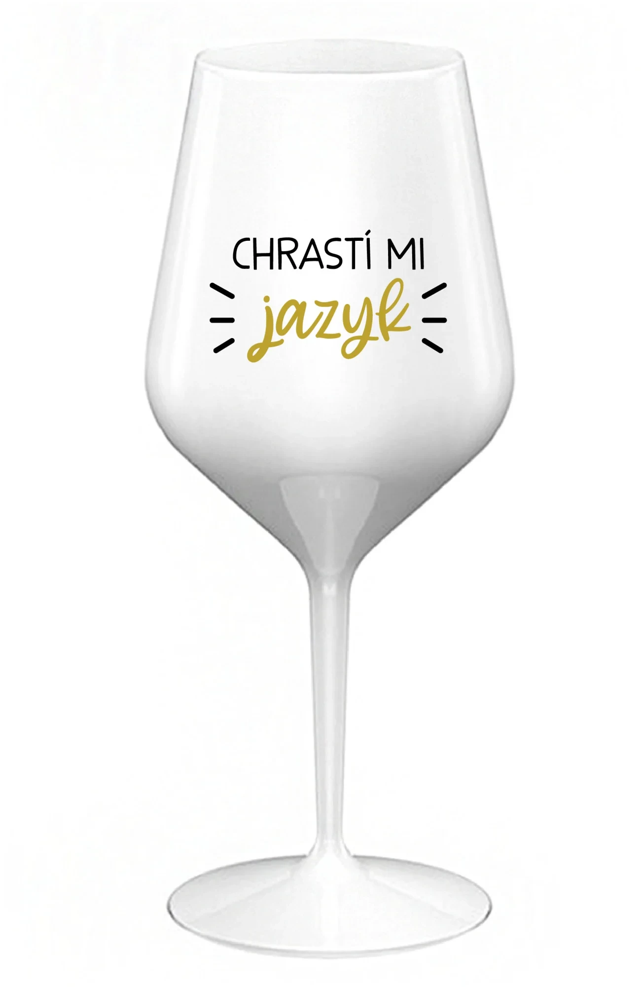CHRASTÍ MI JAZYK - bílá nerozbitná sklenice na víno 470 ml