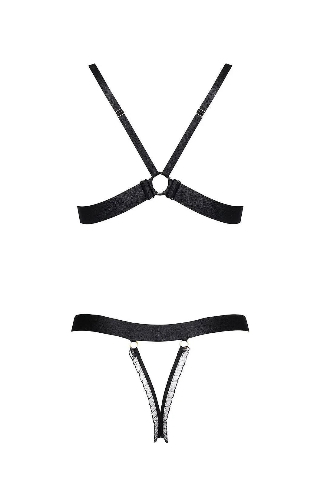Ano, černá + červená je vždy dobrou volbou, pokud jde o smyslné spodní prádlo, a když k tomu přidáte módní široké ploché gumičky, jemný tyl a sexy střih - máte komplet, který elektrizuje jeho smysly. Zvolte praktičnost v sexy prostředí - podprsenku a tanga. Měkké košíčky s ozdobou uprostřed, ramínka v moderním stylu, vzadu ve tvaru V. Spodní část je nádherně zvýrazněná. To je ono! Složení: 80 % polyamid, 20 % elastan.EAN čárové kódy zboží jsou: