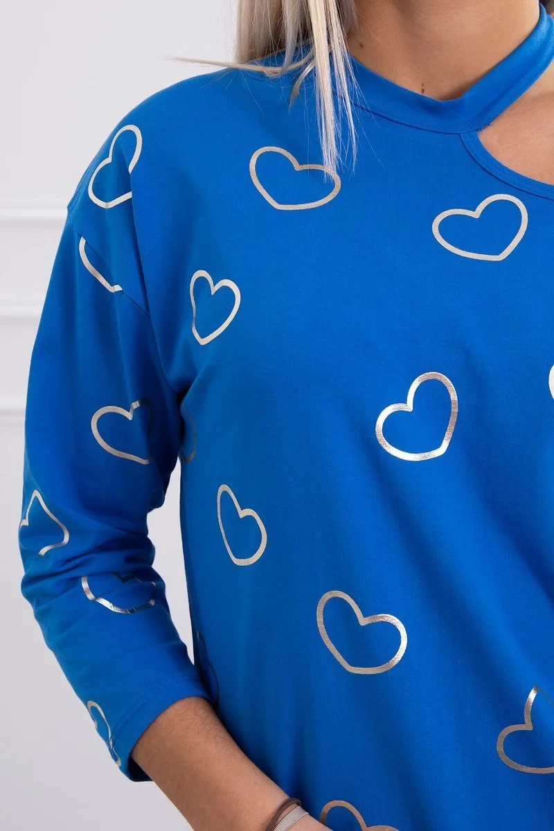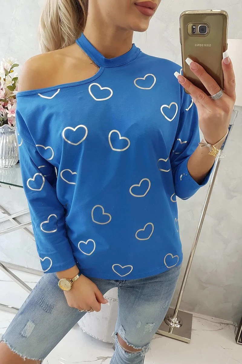 Chrpově modrá halenka s potiskem srdce