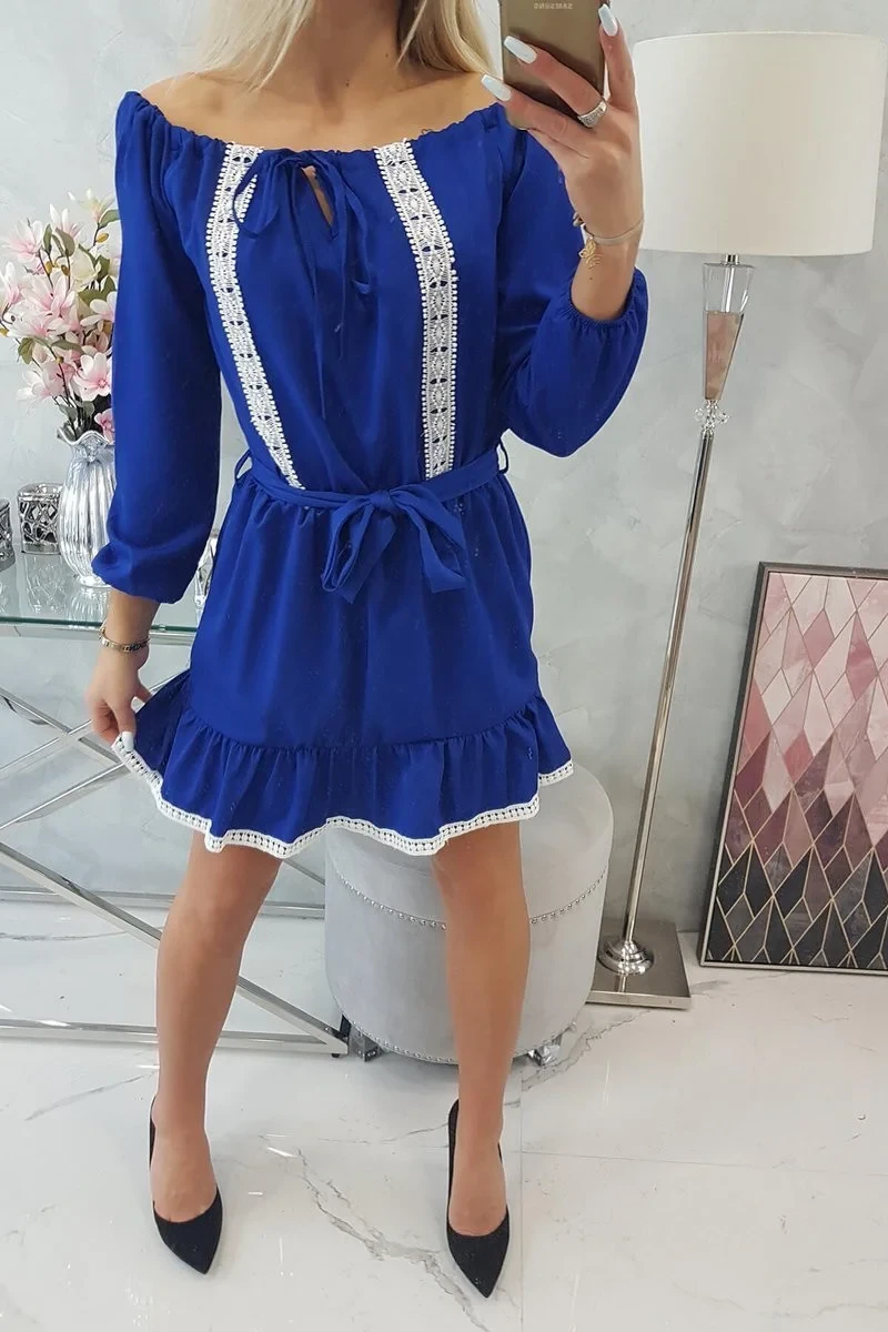 Představujeme vám pohodlné šaty. Šaty zavázané v pase. Španělské šaty s krajkovou stuhou. Velmi módní střih. Šaty jsou vyrobeny z vysoce kvalitního materiálu. Velikost je univerzální a vyhovuje dámám, které nosí velikost S, M nebo L.