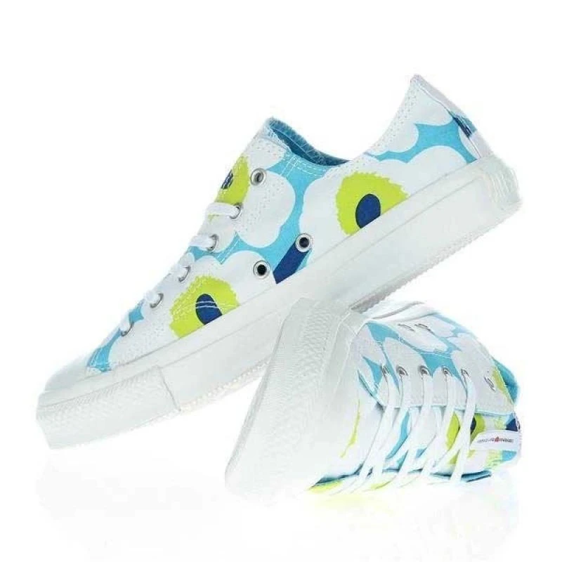 Svršek: Textil Podšívka: Textil Podrážka: Guma Stylové a pohodlné tenisky od kultovní značky Converse z kolekce Chuck Taylor. Prémiová verze navržená slavnou finskou designérskou společností Marimekko. Větrací otvory na boku. Součástí balení jsou dva páry tkaniček: bílá a modrá.
