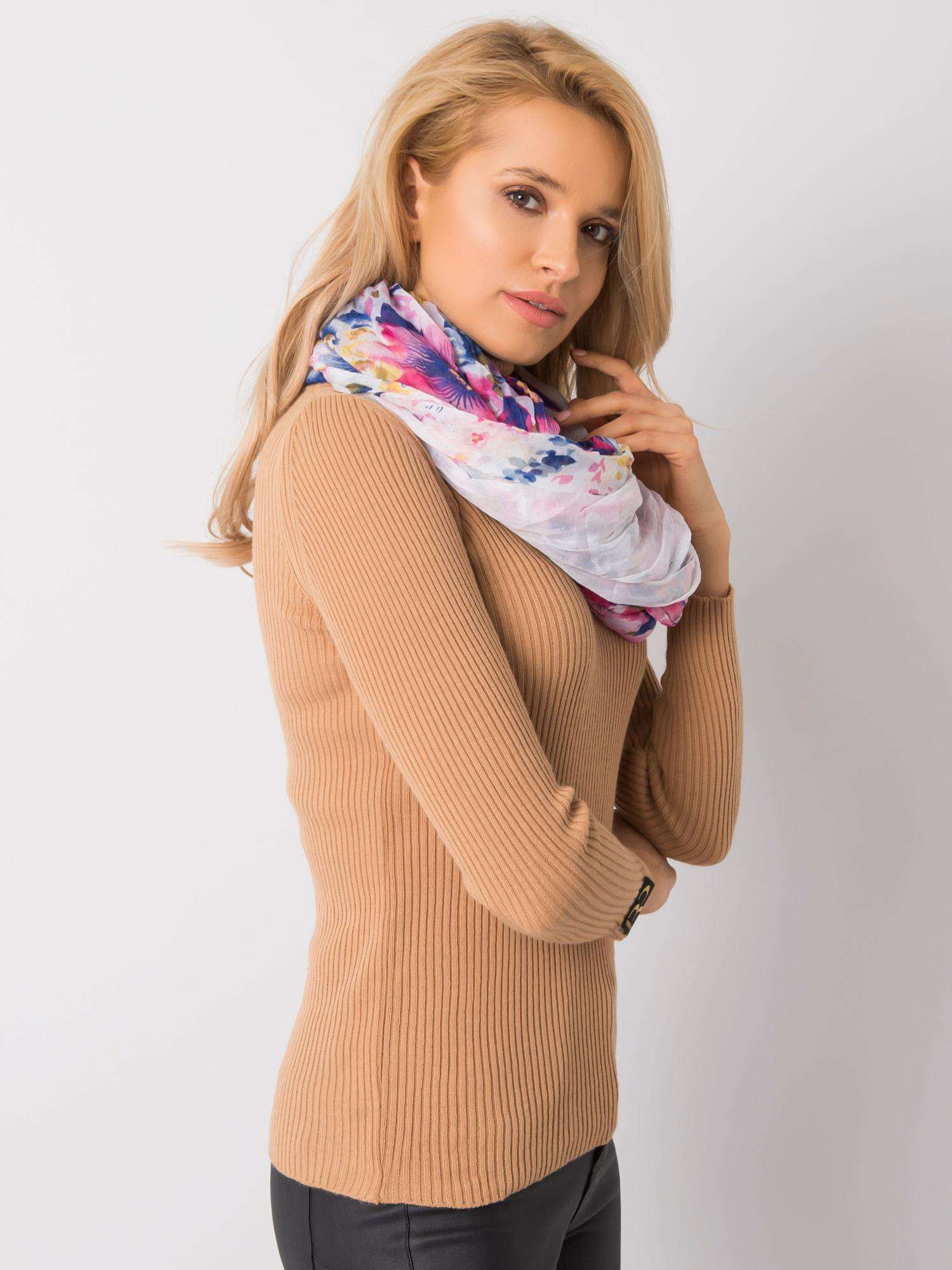 Chusta z nadrukiem kwiatów biała.