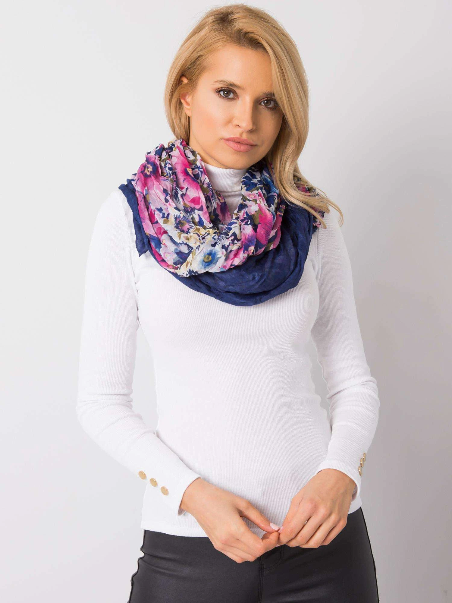 Chusta z nadrukiem kwiatów granatowa.