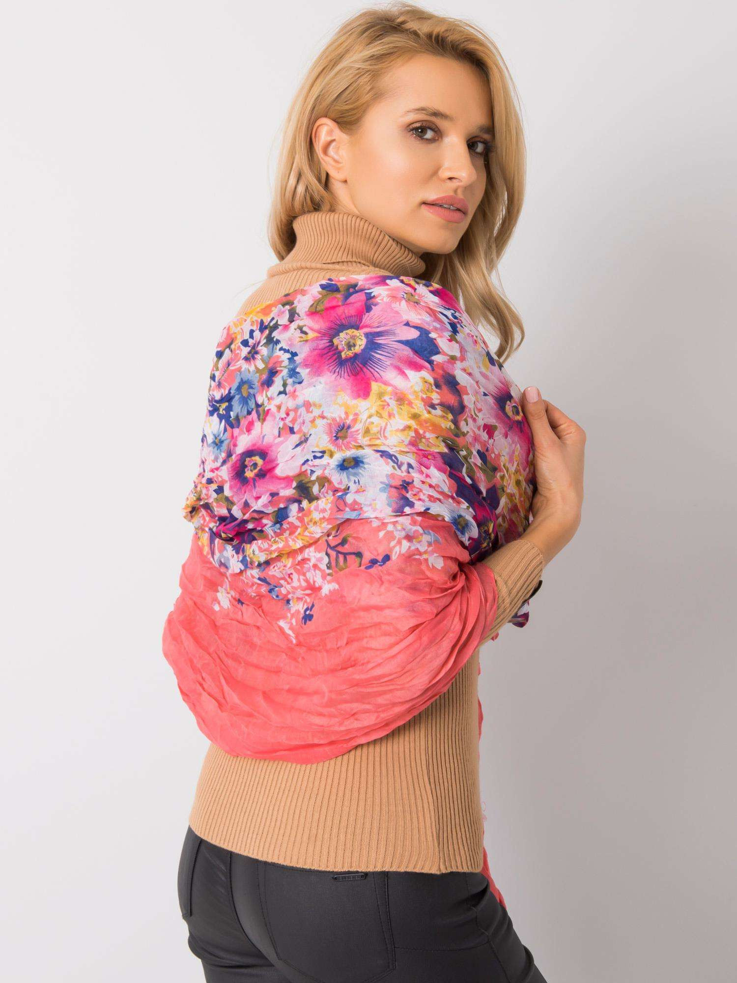 Chusta z nadrukiem kwiatów koralowa.