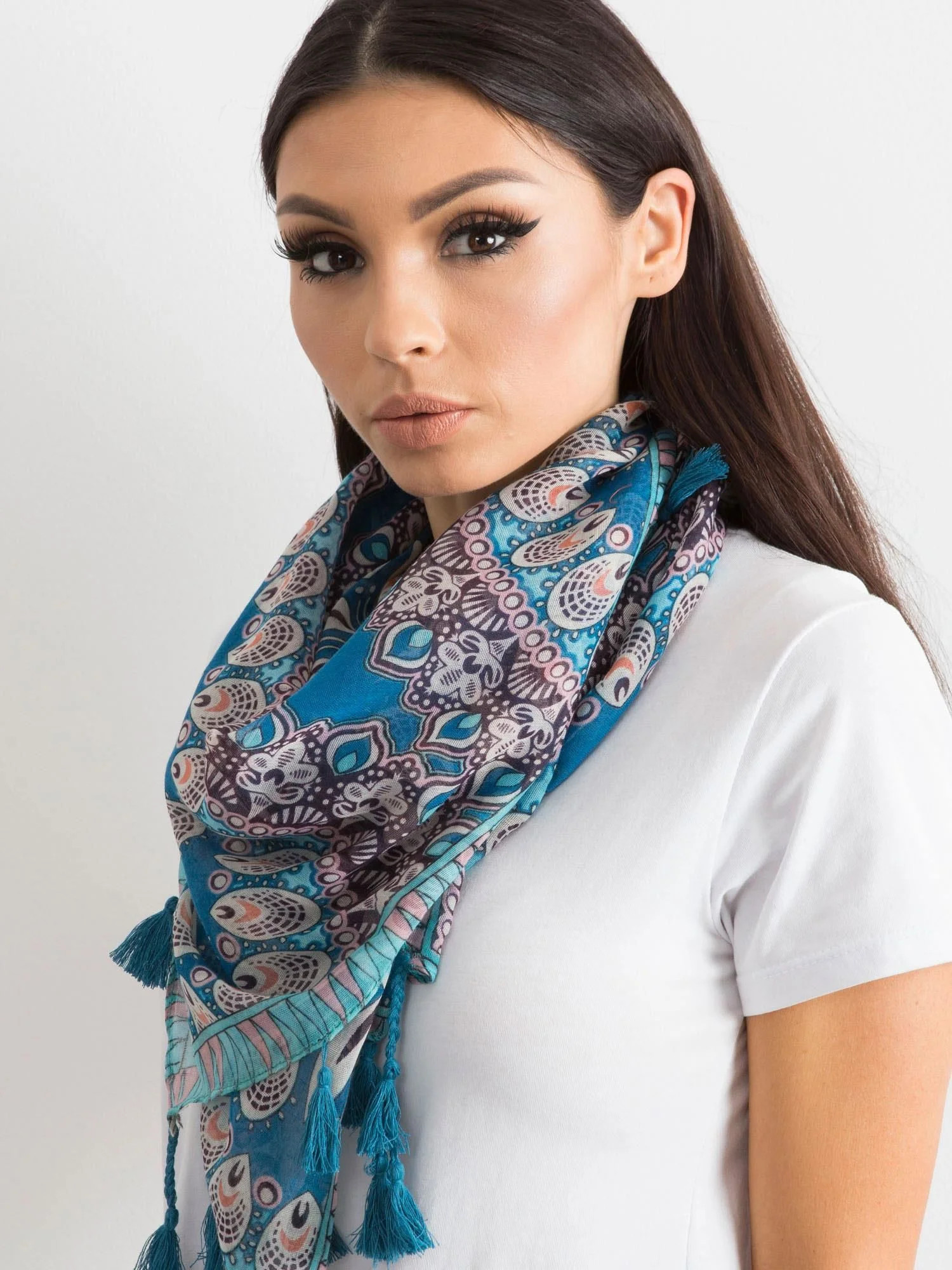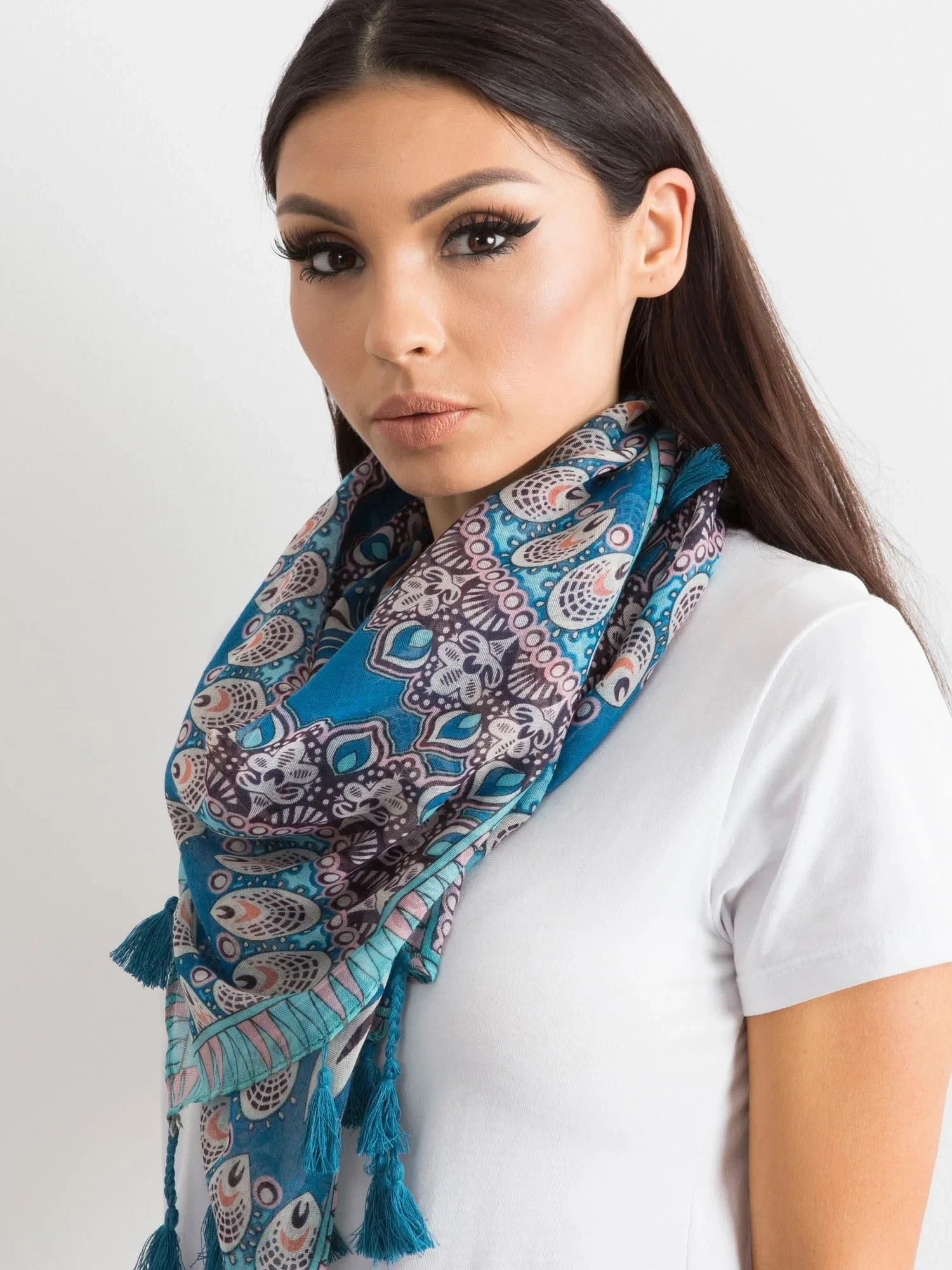 Chusta z etnicznym nadrukiem niebieska.