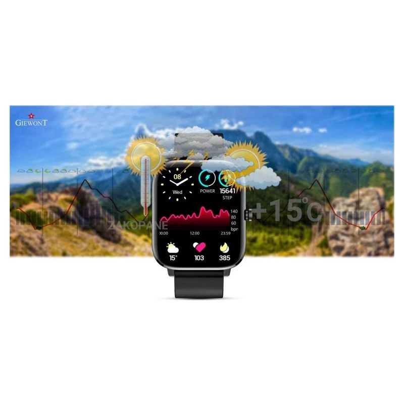 Chytré hodinky Giewontwy jsou také vybaveny praktickým teploměrem pro měření tělesné teploty i teploty okolí. Díky této funkci může uživatel rychle zkontrolovat svůj zdravotní stav nebo stav svého okolí, aniž by potřeboval další zařízení. Jedná se o pohodlné a moderní řešení, které rozšiřuje funkčnost hodinek a činí z nich ještě užitečnějšího společníka v každodenním životě.