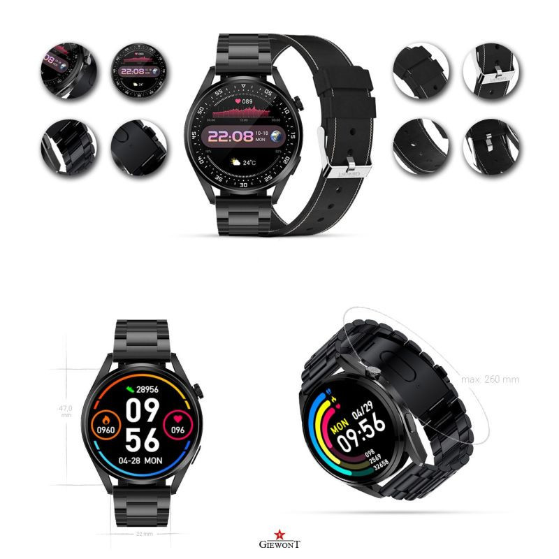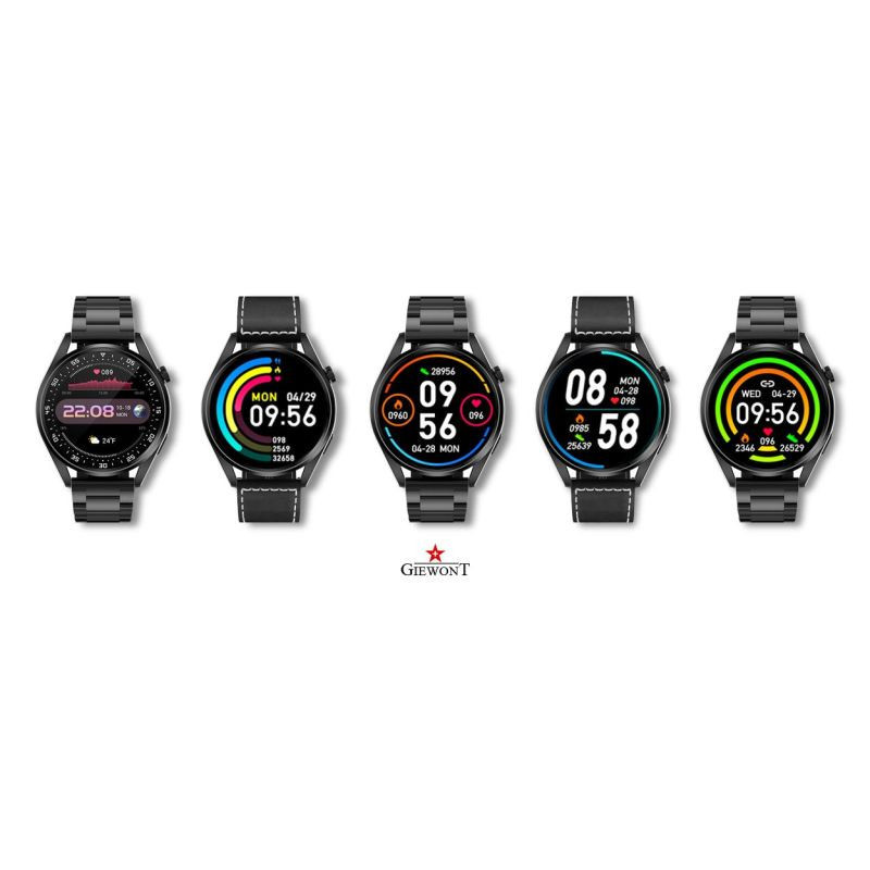 Jedná se o mimořádně elegantní chytré hodinky na náramku s přídavným silikonovým řemínkem nebo koženým řemínkem se silikonovou podšívkou, které vás budou provázet při vašich každodenních aktivitách. Jejich lehké pouzdro bude ideální pro jízdu na kole, běh a další sporty, které tyto chytré hodinky umožňují. S těmito chytrými hodinkami si můžete naplno vychutnat každý pohyb - Giewont GW450 vám umožní plánovat a kontrolovat čas, vzdálenost, spálené kalorie a efekt vašeho tréninku. Během aktivity nebo relaxace můžete poslouchat a ovládat hudbu.