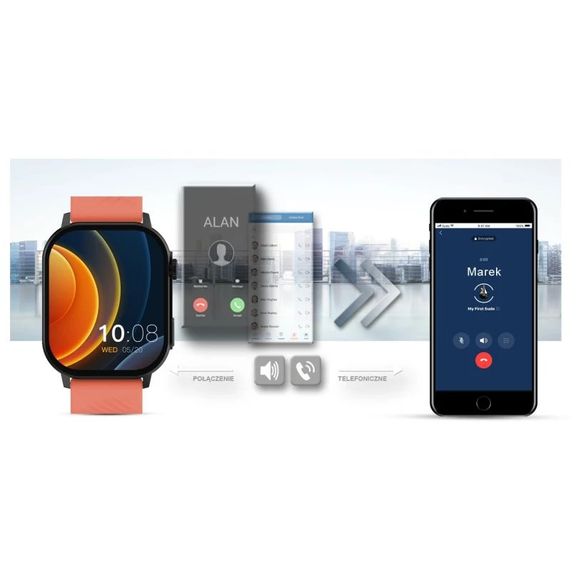 Po sparowaniu smartwatcha z twoim smartfonem, możesz bezproblemowo odbierać i wykonywać połączenia telefoniczne. Wbudowany głośnik oraz mikrofon pozwala rozmawiać bez konieczności wyciągania telefonu komórkowego.