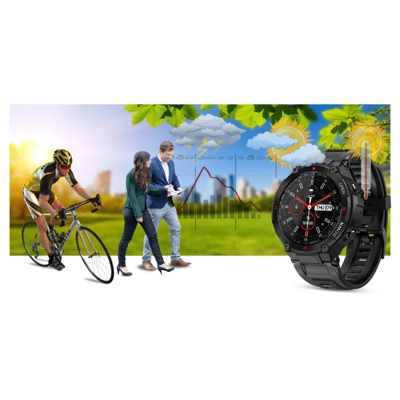 Chytré hodinky po připojení k aplikaci zobrazují údaje o počasí. nyní stačí jediný pohled na chytré hodinky a už víte, jaké bude v nejbližší době počasí. díky počasí na chytrých hodinkách můžete lépe plánovat své aktivity a vhodně se oblékat podle okolního počasí!