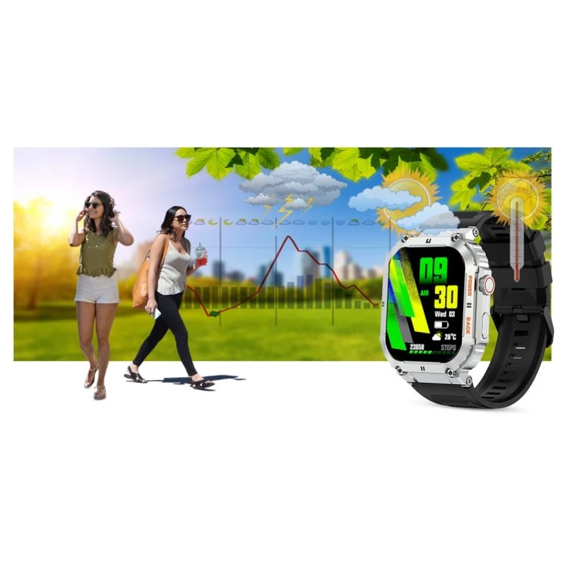 Smartwatch po podłączeniu z aplikacją wyświetla dane o pogodzie.Teraz wystarczy jedno spojrzenia na smartwatcha i już wiesz jaka pogoda będzie Ci towarzyszyć w najbliższym czasie.Dzięki pogodzie w smartwatchu możesz lepiej zaplanować swoją aktywność i ubrać się odpowiednio do otaczającej aury!
