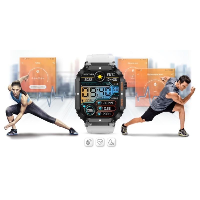 Dzięki sensorowi możesz w każdej chwili zmierzyć lub wykonać pomiar: ciśnienie krwi, tętno lub saturację - zawartość tlenu we krwi w swoim organizmie. Kontroluj wyniki podczas każdej aktywności fizycznej. Niezależnie czy jeździsz na rowerze, biegasz, czy też po prostu jesteś w pracy lub odpoczywasz. Twój smartwatch GRAVITY stanie się osobistym asystentem dbającym o twoje zdrowie każdego dnia.