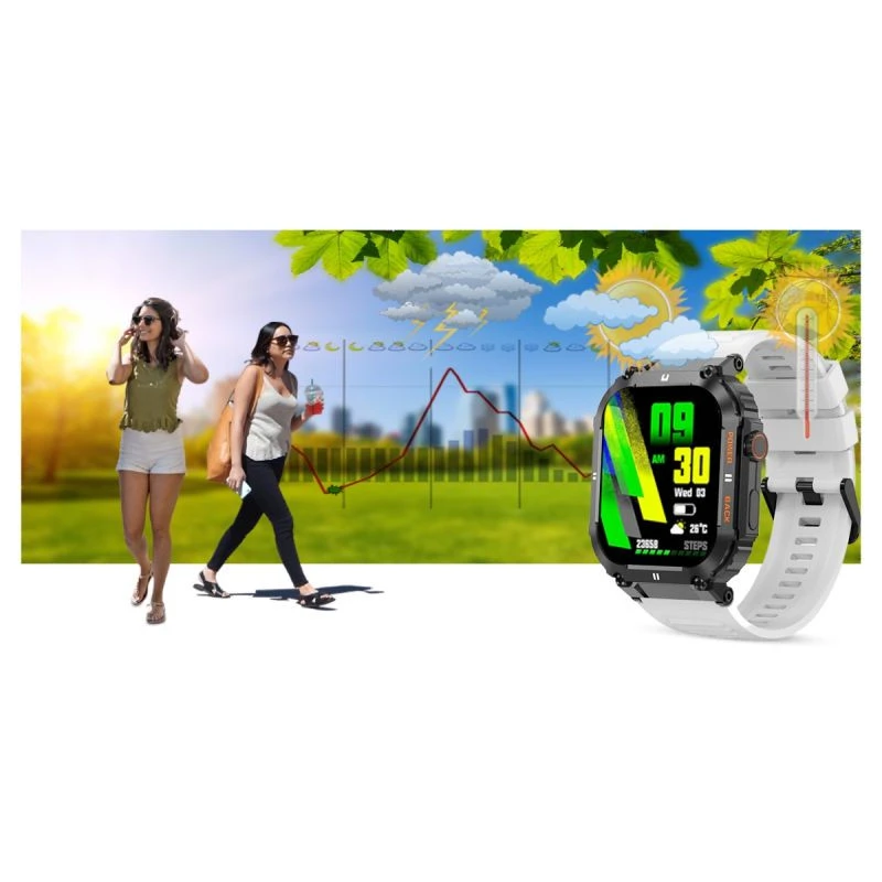 Smartwatch po podłączeniu z aplikacją wyświetla dane o pogodzie.Teraz wystarczy jedno spojrzenia na smartwatcha i już wiesz jaka pogoda będzie Ci towarzyszyć w najbliższym czasie.Dzięki pogodzie w smartwatchu możesz lepiej zaplanować swoją aktywność i ubrać się odpowiednio do otaczającej aury!