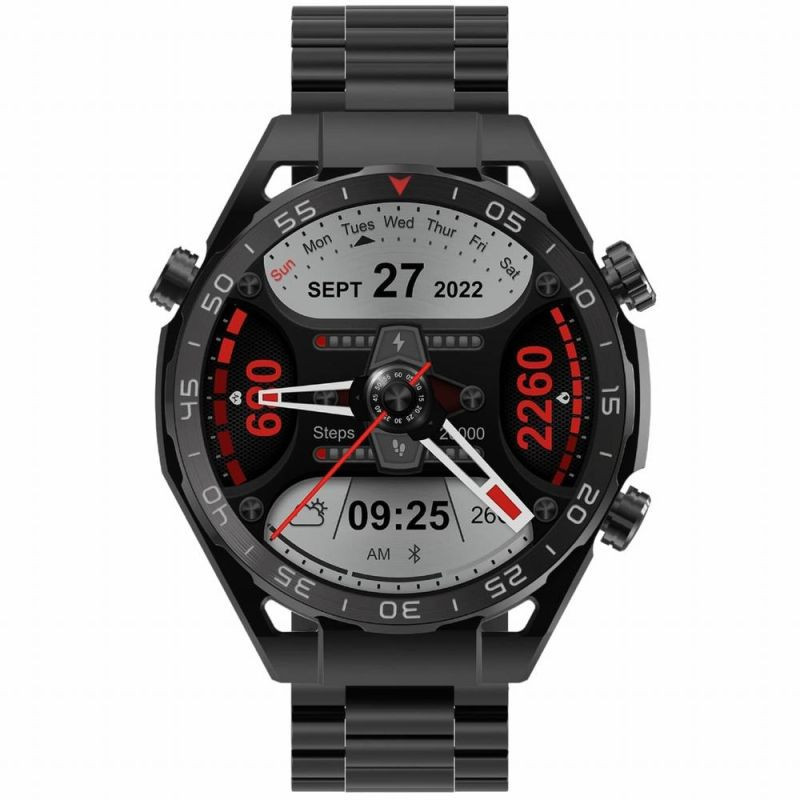Stylowy, funkcjonalny, innowacyjny.Wytrzymała metalowa koperta, mineralne i hartowane szkło, ekran dotykowy 1,39 cala o rozdzielczości 360*360 pikseli, funkcja rozmowy, sterowanie odtwarzaczem muzyki, mnóstwo trybów sportowych, mocna bateria.