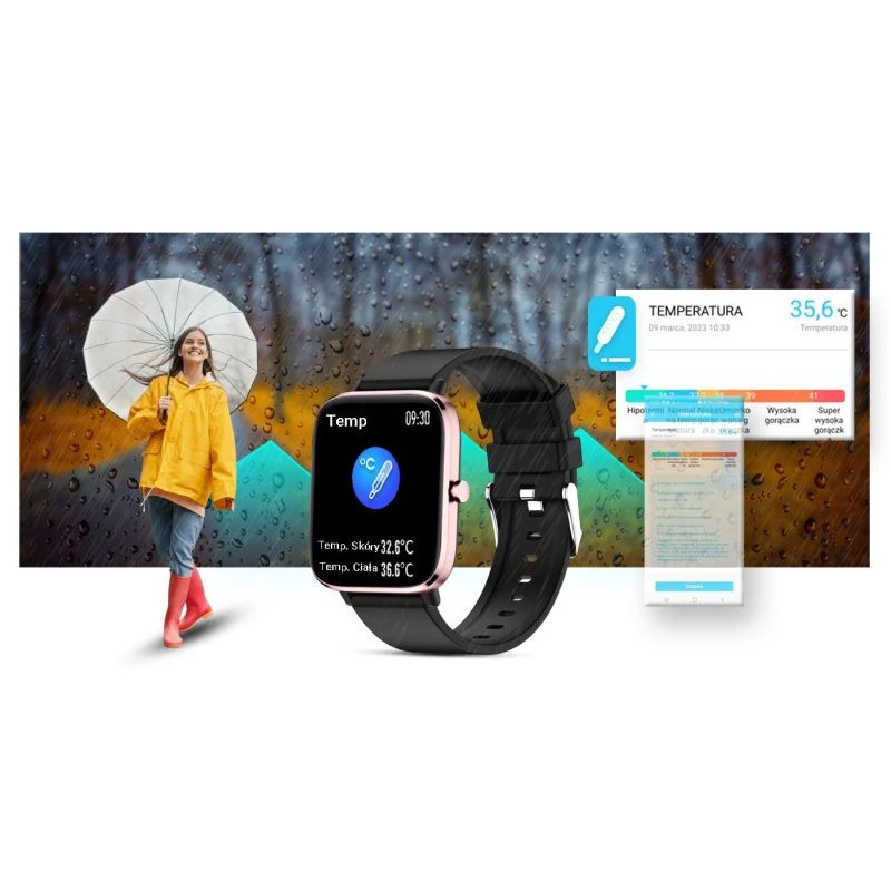 Chytré hodinky Giewontwy jsou také vybaveny praktickým teploměrem pro měření tělesné teploty i teploty okolí. Díky této funkci může uživatel rychle zkontrolovat svůj zdravotní stav nebo stav svého okolí, aniž by potřeboval další zařízení. Jedná se o pohodlné a moderní řešení, které rozšiřuje funkčnost hodinek a činí z nich ještě užitečnějšího společníka v každodenním životě.