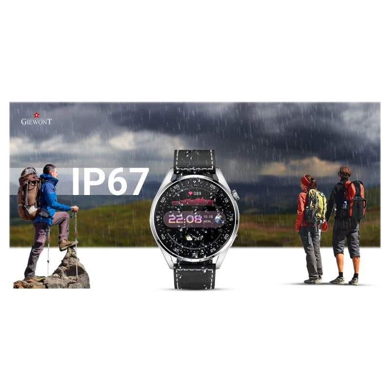 Chytré hodinky Giewont GW450 mají stupeň vodotěsnosti IP67, jsou odolné proti náhodnému polití, postříkání a dešti. S tímto modelem se nemůžete vykoupat.
