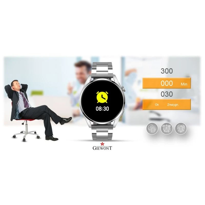 Jedná se o mimořádně elegantní chytré hodinky na náramku s přídavným silikonovým řemínkem nebo koženým řemínkem se silikonovou podšívkou, které vás budou provázet při vašich každodenních aktivitách. Jejich lehké pouzdro bude ideální pro jízdu na kole, běh a další sporty, které tyto chytré hodinky umožňují. S těmito chytrými hodinkami si můžete naplno vychutnat každý pohyb - Giewont GW450 vám umožní plánovat a kontrolovat čas, vzdálenost, spálené kalorie a efekt vašeho tréninku. Během aktivity nebo relaxace můžete poslouchat a ovládat hudbu.