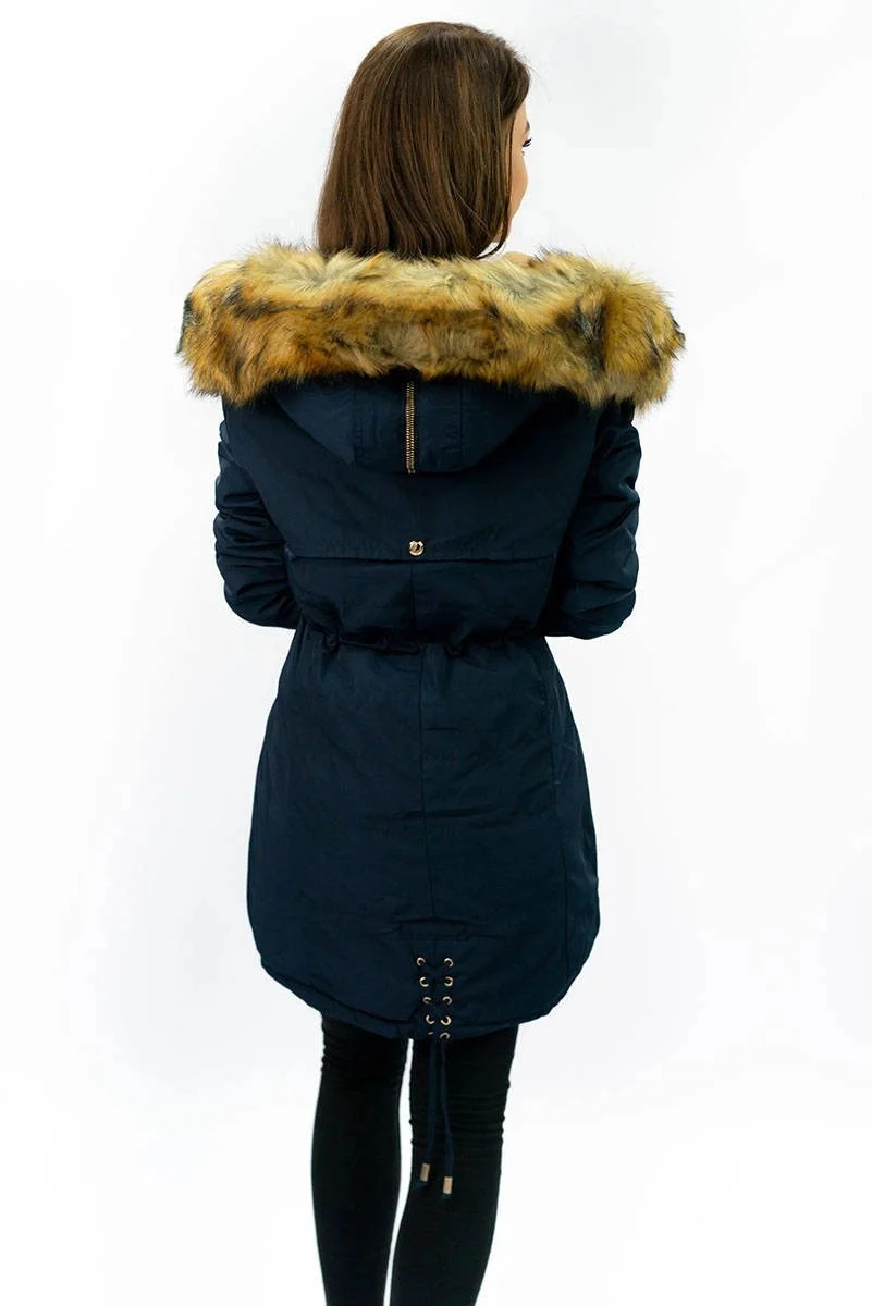 CIEPŁA DAMSKA PARKA ZIMOWA GRANATOWA model 21241751 - MHM