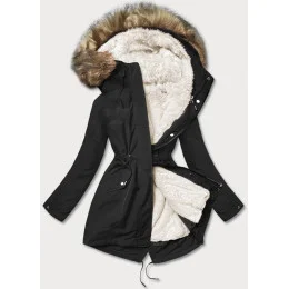 Ciepła kurtka zimowa damska czarny/ecru/brąz (w629big)