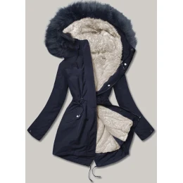 Ciepła kurtka zimowa damska granat/ecru/granat (w629big)