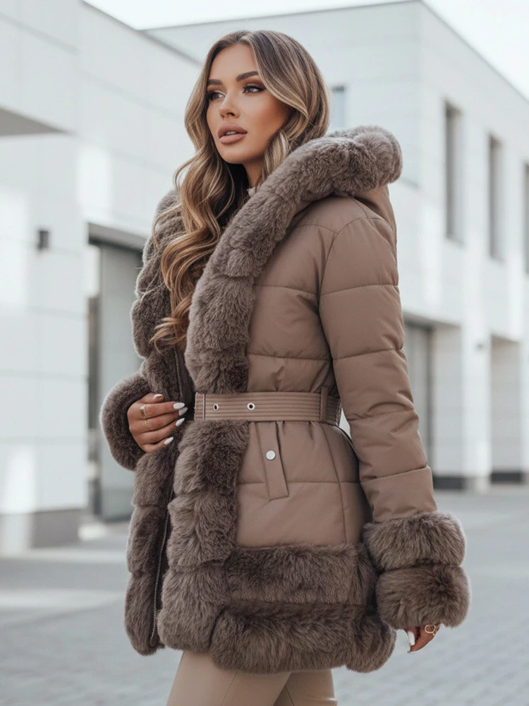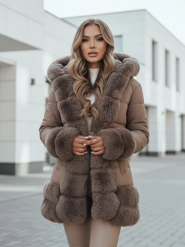 - Rukávy a spodní lem lemované kožešinou dodávají charakter