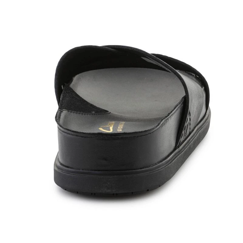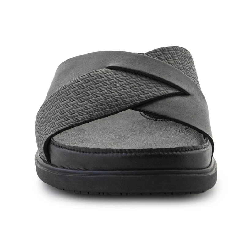 Lehká a pružná gumová podrážka nabízí dobrou přilnavost a stabilitu, díky čemuž jsou sandály vhodné pro každodenní nošení i prázdninové procházky. Klasická černá barva a překřížené pásky dodávají modelu nadčasový, univerzální charakter.