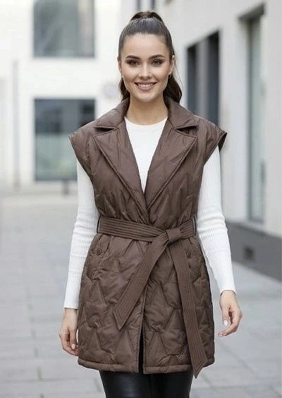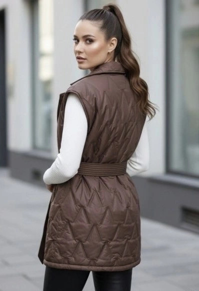 Čokoládová prošívaná vesta Goodlookin s páskem (B8603-14)