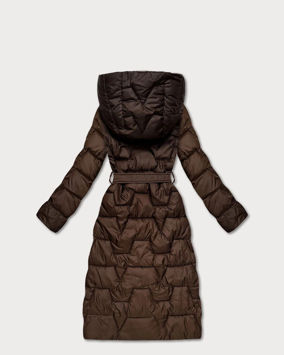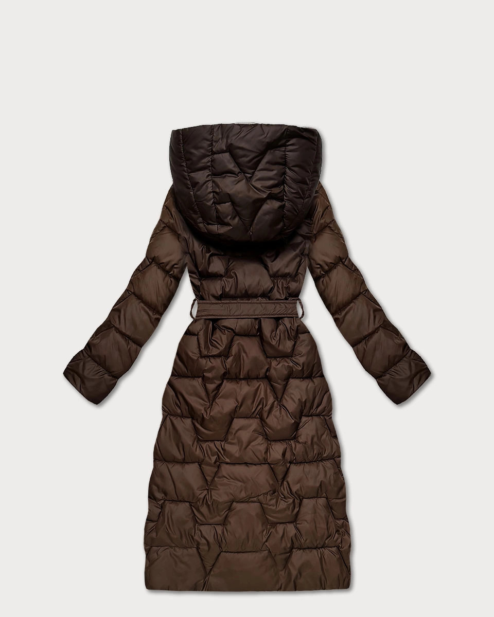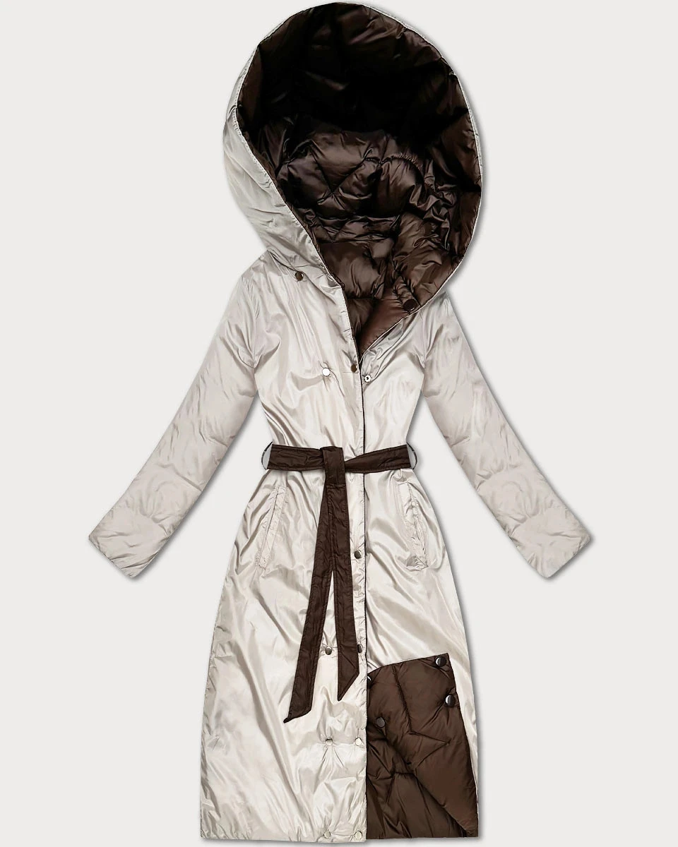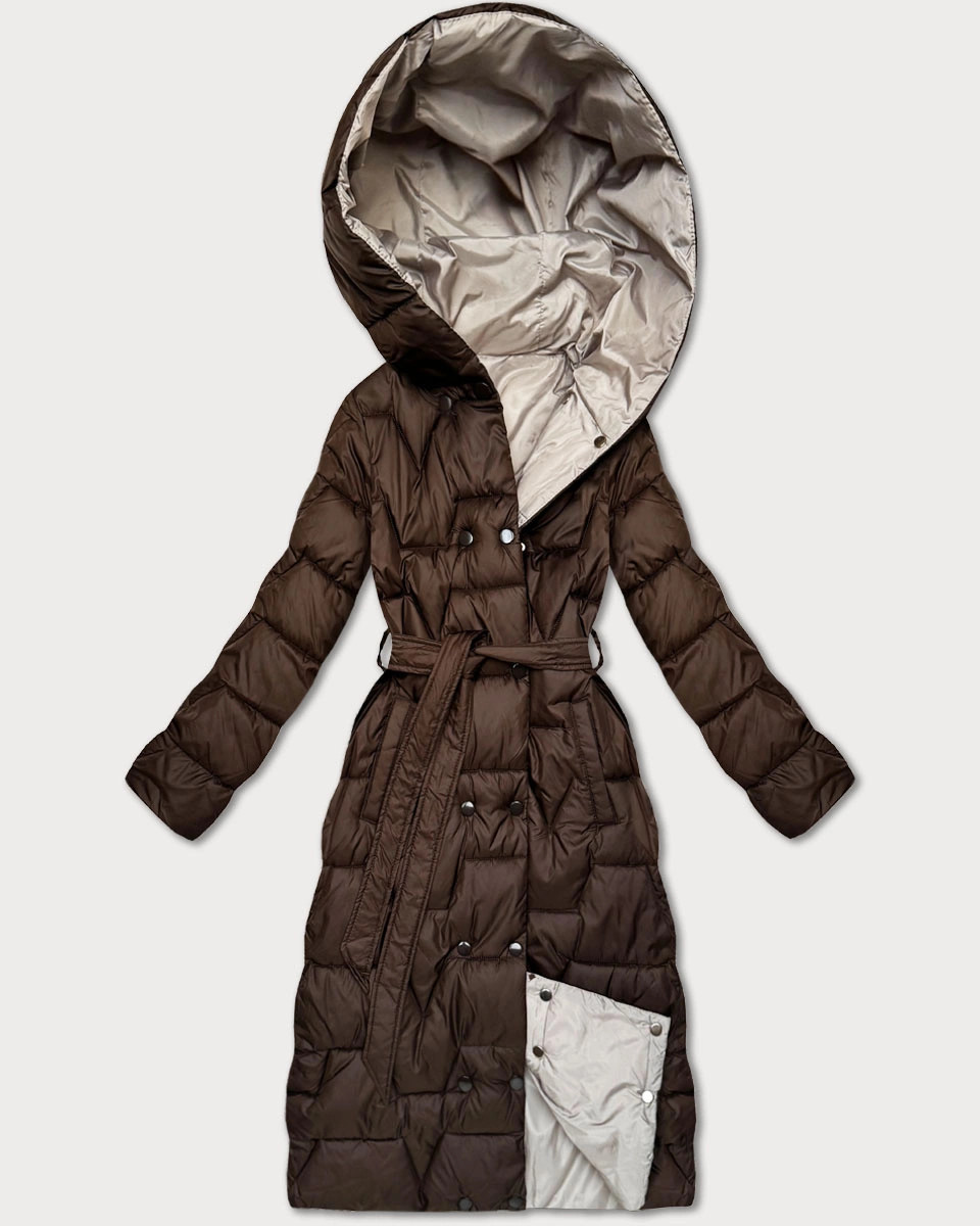 Čokoládovo-béžový oboustranný prošívaný kabát v délce ke kolenům pro přechodné období Minority (M6-6015-103+62)