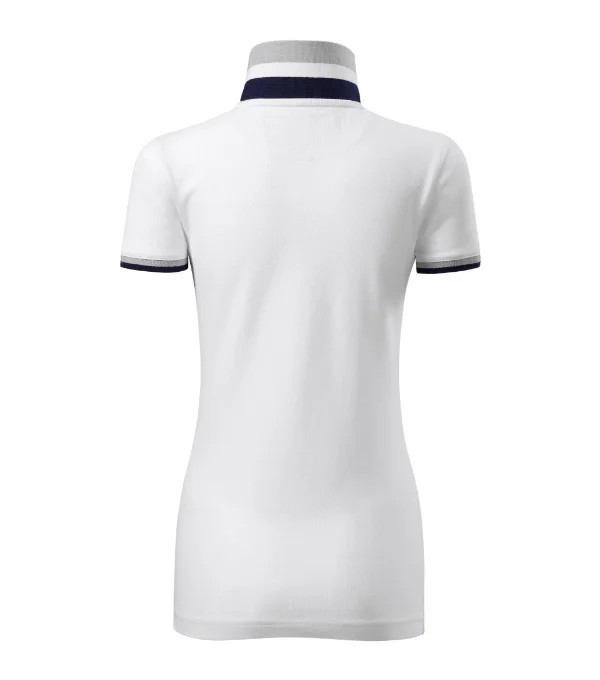 lehce vypasovaný střih s bočními švy límeček a lemy rukávů z žebrového úpletu 1:1 spodní část límečku a lemy rukávů s kontrastními pruhy úzká léga s 4 knoflíčky v barvě materiálu rozparky v bočních švech a spodní léga s kontrastní páskou vnitřní průkrčník začištěn kontrastní páskou zpevnění ramenních švů páskou