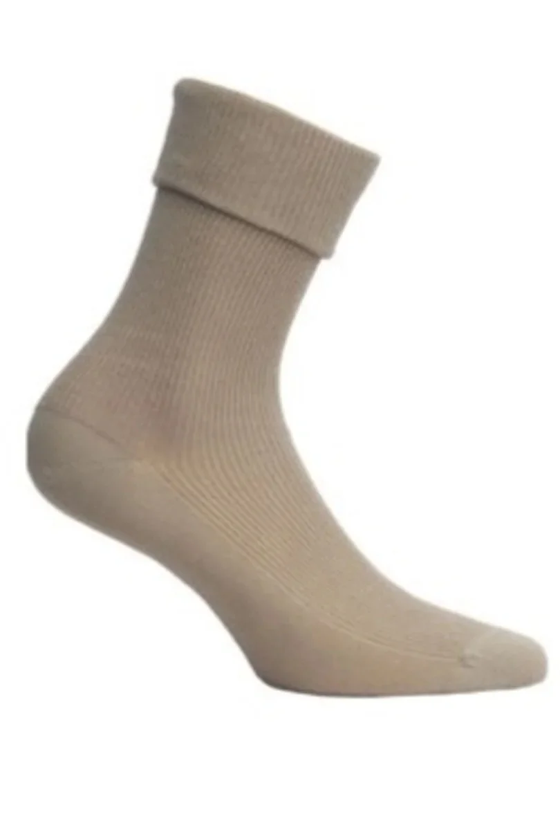 Dámské bavlněné ponožky, které netlačí, ideální pro oteklé nohy a pro diabetikyów. Lze je nosit hladké nebo s ohrnutou manžetou.