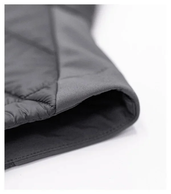 kombinace prošívaného a softshellového materiálu střih tvarovaný bočními díly celopropínací spirálový zip s krytkou brady boční kapsy se spirálovým zipem vnitřní náprsní kapsa na zip tvarovaný a mírně prodloužený zadní díl vstup pro branding v podšívce zadního dílu