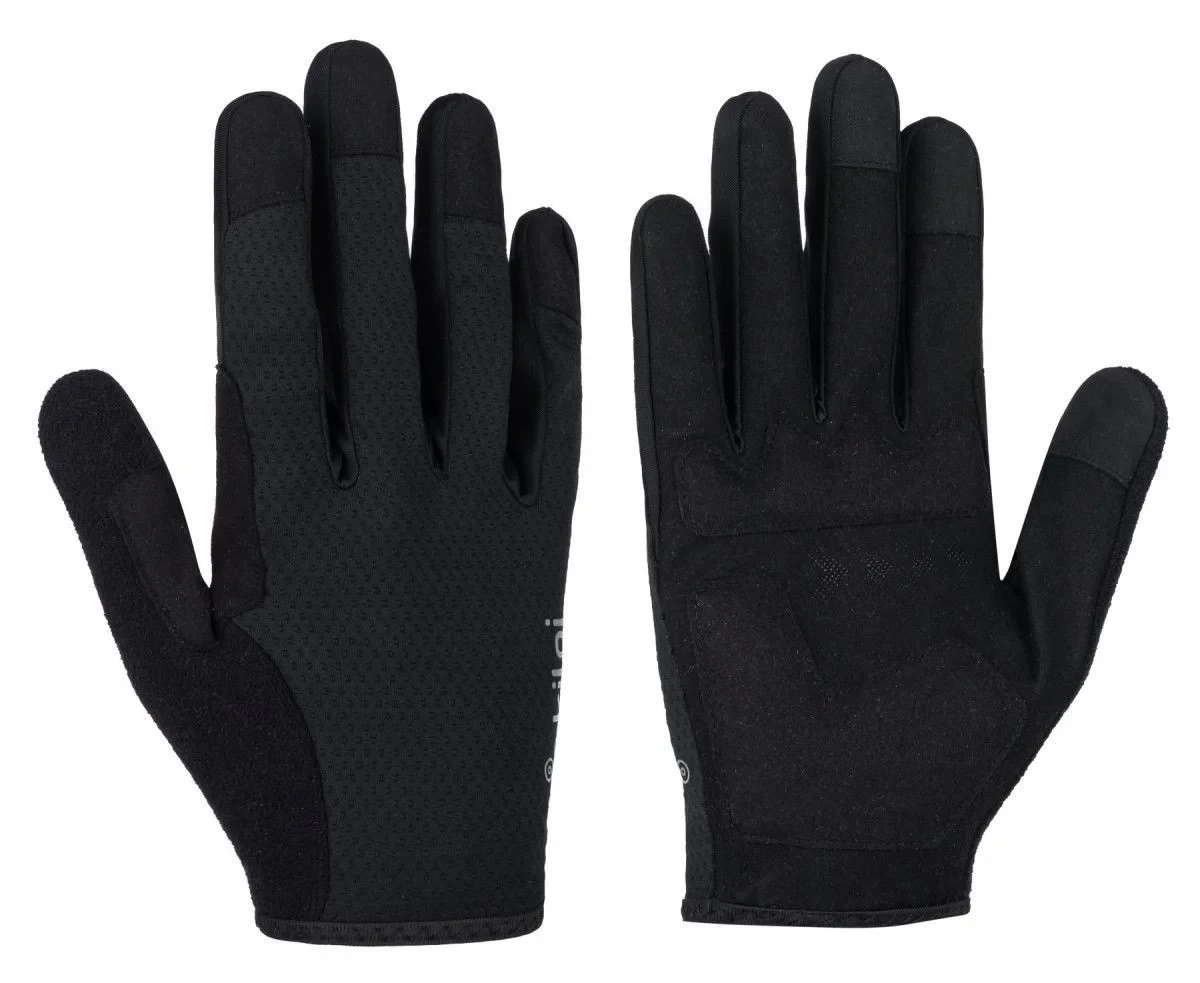 Cyklistické rukavice s dlouhými prsty Kilpi FINGERS-U do chladnějšího počasí jsou vyrobeny ze síťovaného, prodyšného a rychleschnoucího materiálu OPTI-DRY. Na spodní straně dlaně jsou umístěny protismykové silikonové potisky a gelové polštářky pro měkký úchop řidítek. Hřbet palce z měkkého a savého materiálu poslouží jako hadřík na brýle nebo obličej. Zesílená oblast mezi palcem a ukazovákem je odolná vůči oděru. Lemy kolem zápěstí jsou dostatečně elastické a rukavice se snadno nasazují. Kilpi FINGERS-U máme v nabídce v univerzální černé barvě pro muže i ženy.Materiálové složení: