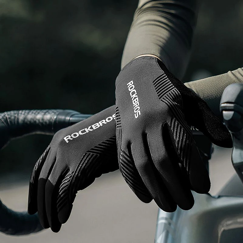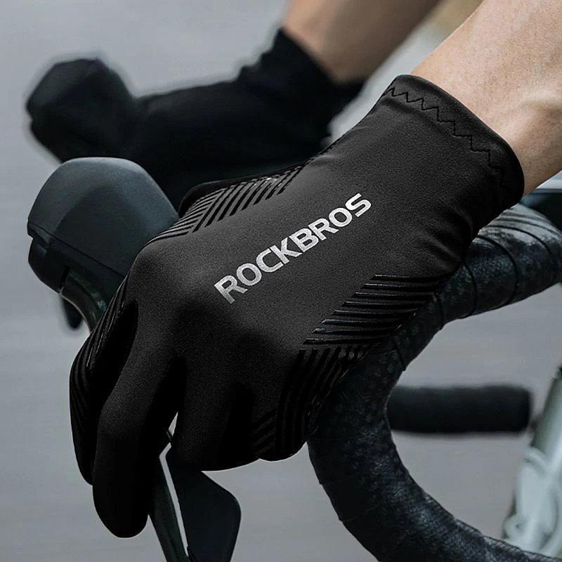 Cyklistické rukavice Rockbros jaro/léto/podzim, plné, velikost: L - černé