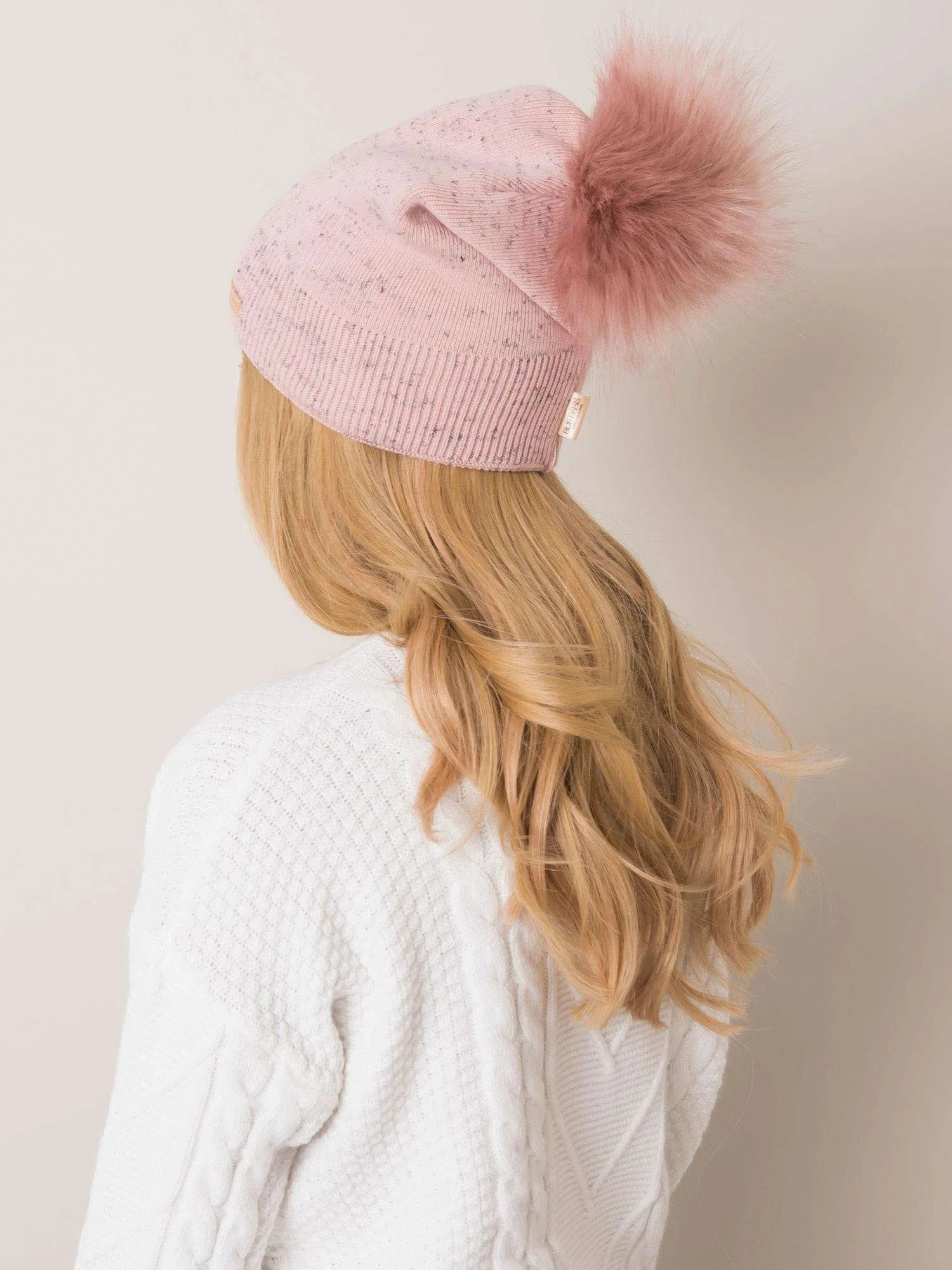 RUE PARIS Brudnoróżowa czapka damska z pomponem Produkt polski